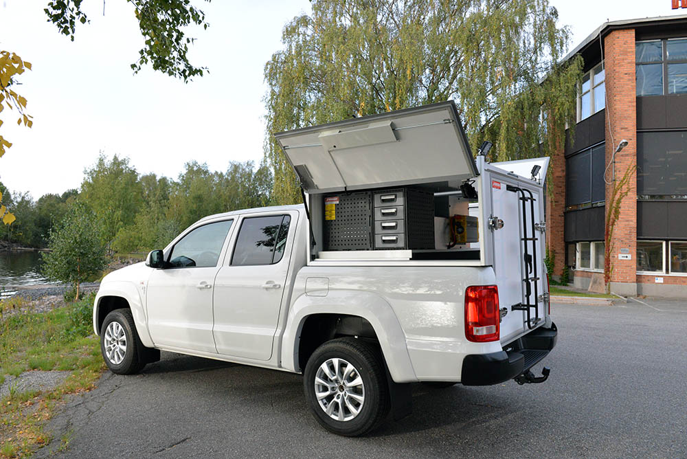 Chicagoskåp med strut monterad på Toyota Hilux. Hämtas snart av kund. Lycka till med våra fina skåp.